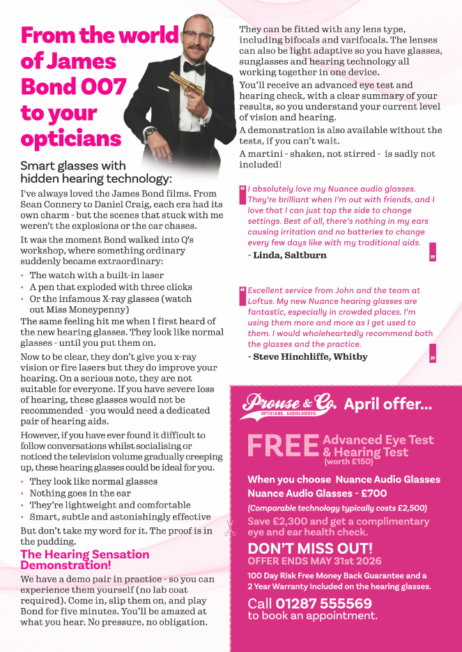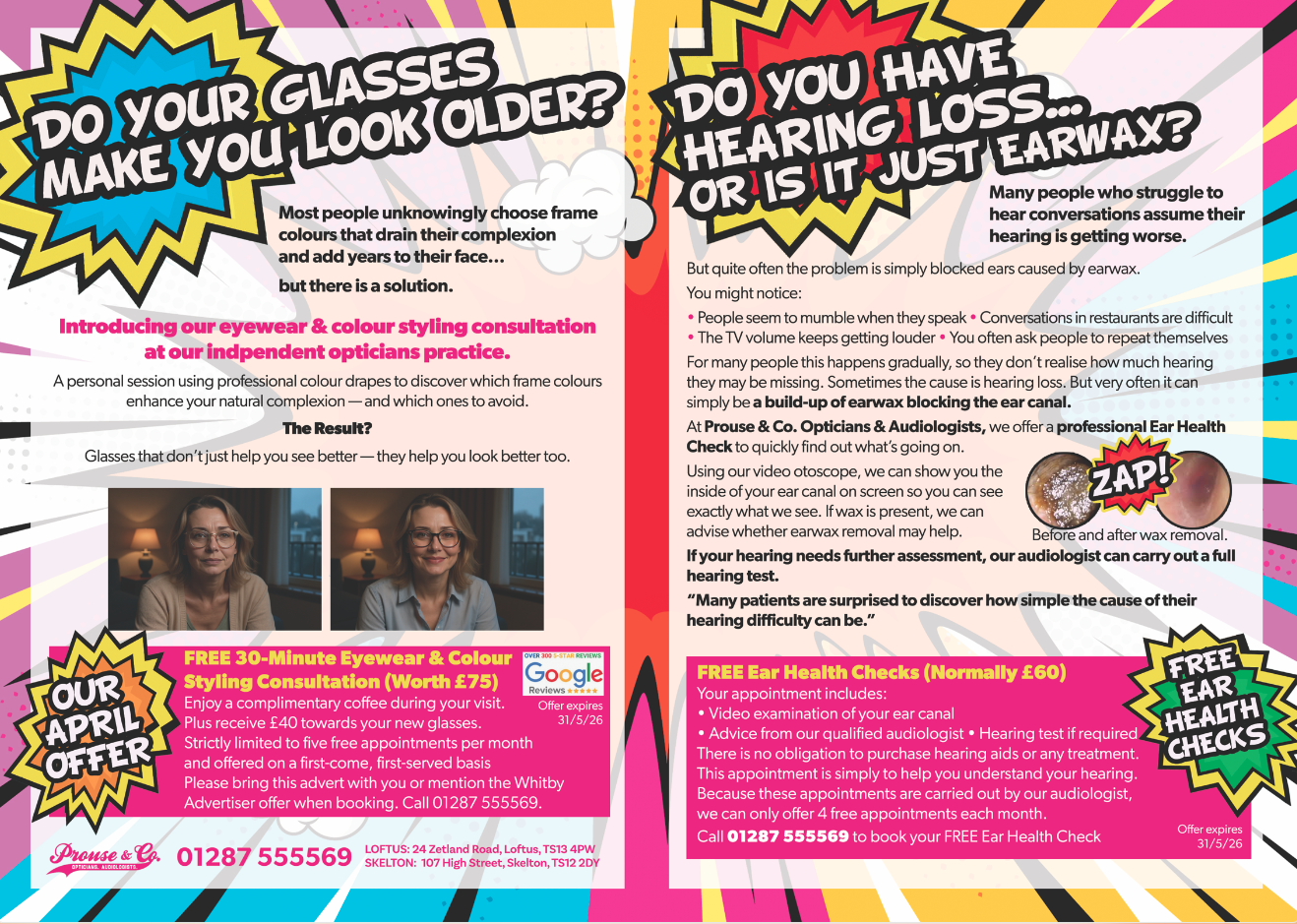 For eye tests, contact lenses and spectacles. Home visits can be arranged. This is free for clients over 60.